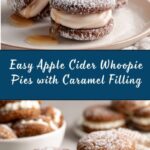 Delight in these Apple Cider Whoopie Pies, featuring soft, spiced cake rounds infused with apple cider and warm autumn spices, generously filled with luscious caramel sauce. Perfect for cozy fall gatherings or a sweet seasonal treat.