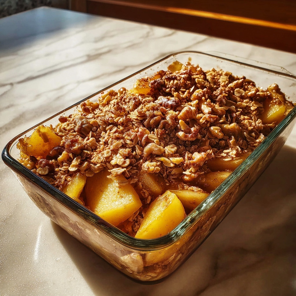 Stir in the chopped walnuts gently, adding that irresistible nutty texture that contrasts beautifully with the soft oats and sweet apples.