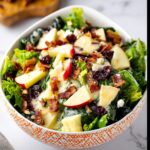 A vibrant and crunchy Autumn Chopped Salad featuring Romaine and Spring Mix lettuces, crisp apples, dried cranberries, candied pecans, crispy bacon, and creamy Feta cheese, all tossed together and finished with a luscious creamy poppy seed dressing. Perfect as a light lunch or a festive side dish during fall gatherings.