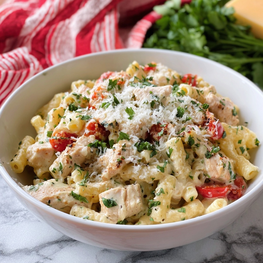 To reheat, warm the pasta gently on the stovetop over medium-low heat, adding a splash of water or broth to loosen the sauce as needed. Avoid high heat to prevent the cheese from separating and ensure the chicken stays tender.