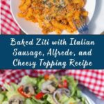 Baked Ziti with Italian Sausage, Alfredo, and Cheesy Topping Recipe