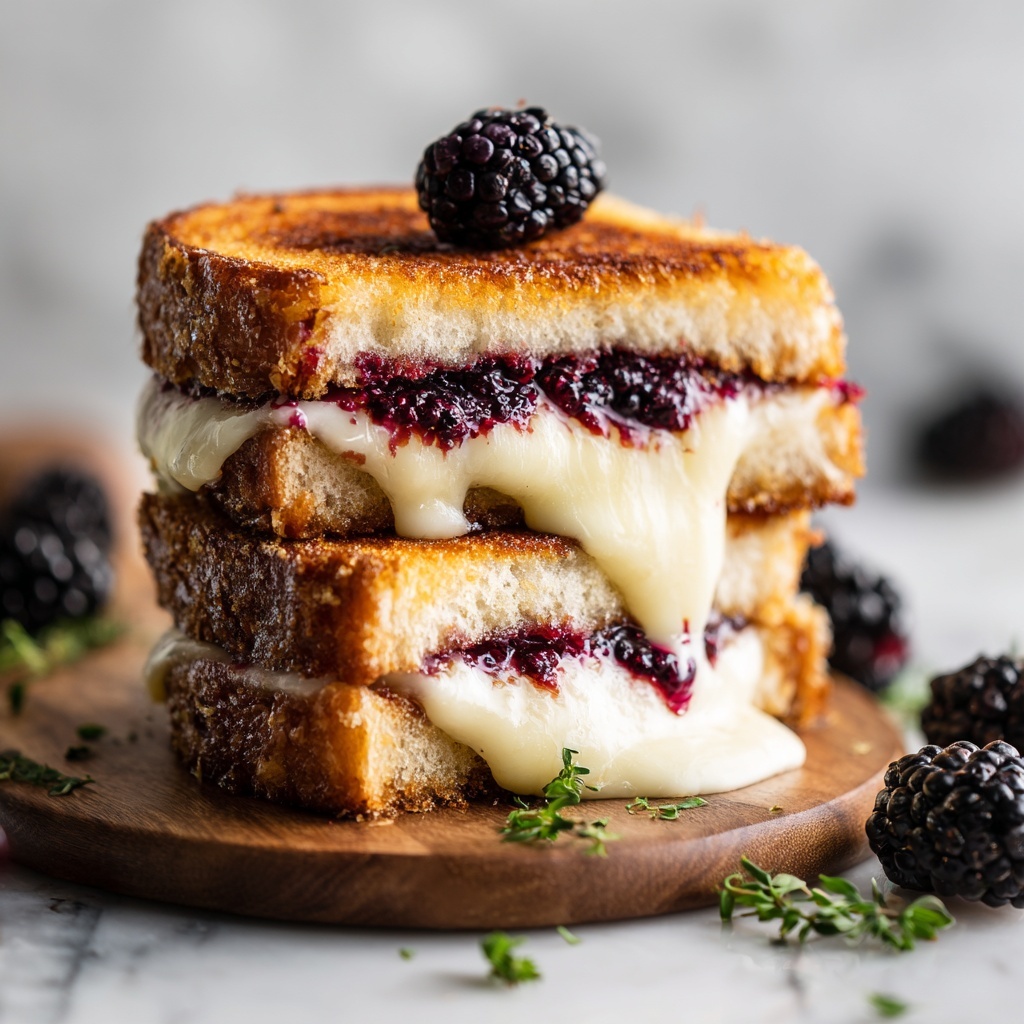 A delightful twist on the classic grilled cheese sandwich, combining creamy brie with sweet blackberry jam and tangy balsamic vinegar, all nestled between crispy sourdough bread. This gourmet sandwich balances sweet and savory flavors, perfect for lunch or a satisfying snack.