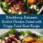 A vibrant and delicious Blackberry Balsamic Grilled Chicken Salad featuring juicy grilled chicken breasts, fresh mixed greens, and a tangy blackberry balsamic vinaigrette. Crispy fried goat cheese rounds add a luxurious texture and flavor, making this salad perfect for a refreshing summer meal or light dinner.