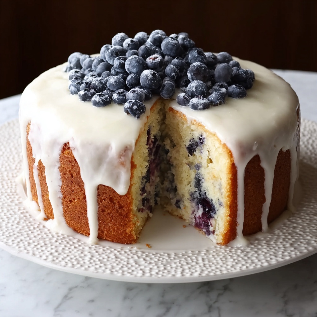 Fresh blueberries and a sprinkle of lemon zest on top add a gorgeous natural decoration that enhances both color and taste, making every slice a visual treat.