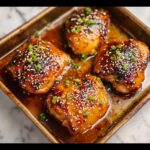 This recipe features tender boneless skinless chicken thighs marinated in a flavorful teriyaki sauce, then pan-seared to juicy perfection. It’s a quick and easy dish ideal for weeknight dinners, garnished with optional sesame seeds and green onions for an added touch of freshness and texture.