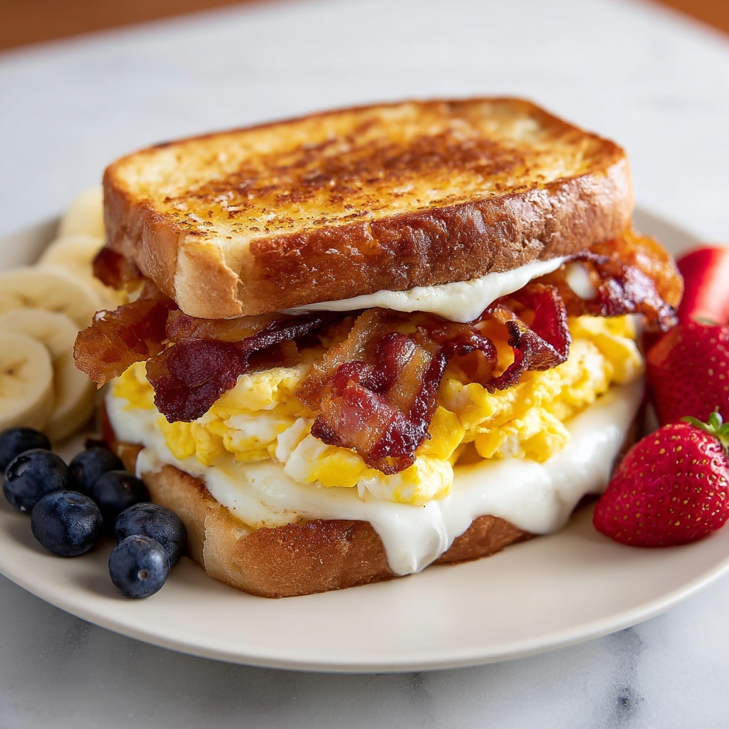 This Breakfast Grilled Cheese is a delicious and comforting morning meal that combines fluffy scrambled eggs, melted cheddar and mozzarella cheese, and optional savory bacon or sausage, all sandwiched between buttery toasted bread. Quickly made on the stovetop, it’s a perfect savory breakfast sandwich that’s easy to customize with extras like spinach, tomato, or avocado for added freshness and flavor.