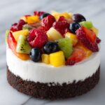 - Add Fresh Fruit: Arrange the sliced strawberries, blueberries, and kiwi artfully over the whipped cream, covering the surface for a colorful and fresh appearance.