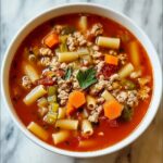 Busy Day Soup is a hearty and comforting one-pot meal perfect for those with limited time but craving a flavorful, home-cooked dish. Made with ground beef, vegetables, macaroni, and a savory onion soup mix, this soup simmers gently to develop rich flavors and satisfying textures, making it ideal for family dinners or meal prep.