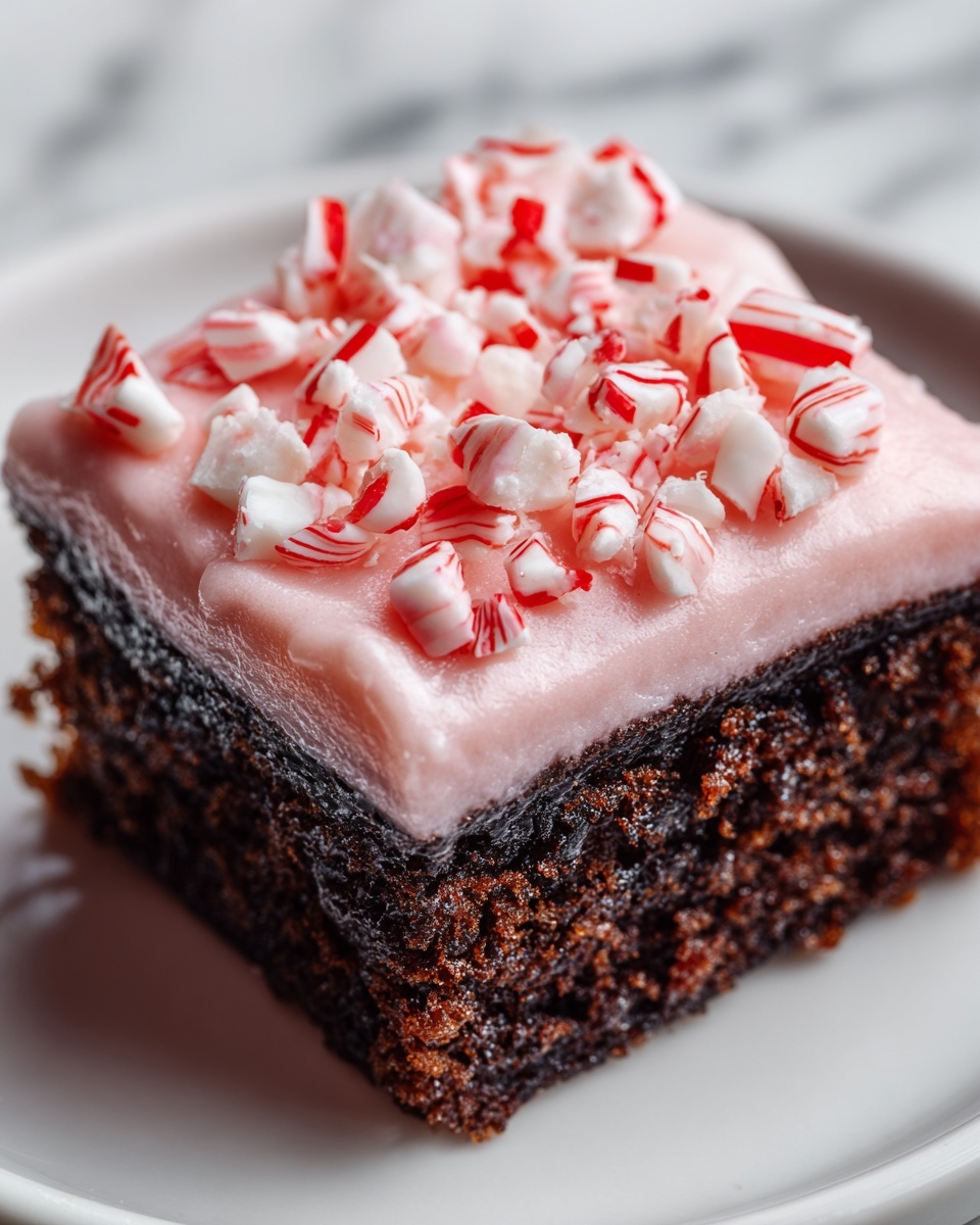 Beyond the crushed candy canes already sprinkled on top, you can add a few whole mini candy canes on the plate for extra charm, or even a dusting of powdered sugar to mimic snow. Fresh mint leaves also add a lovely pop of green that pairs perfectly with this peppermint chocolate treat.
