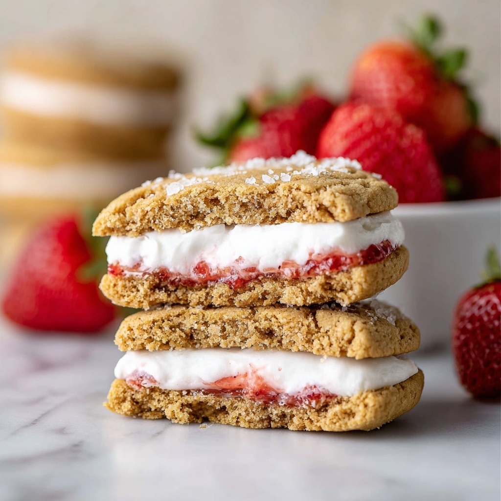 Presenting your Cheesecake Cookies with Strawberry Jam and White Chocolate Recipe on a rustic wooden board or a pretty ceramic platter turns them into an eye-catching dessert centerpiece. Layering a few cookies with some fresh strawberries and white chocolate curls adds dimension and charm. For gifting, wrap them in parchment tied with a ribbon, and you have a delightful homemade treat that feels special and thoughtful.