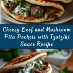 Cheesy Beef and Mushroom Pita Pockets with Tzatziki Sauce Recipe