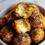 Dip each cheese ball into the egg wash, allowing any excess to drip off, then roll it thoroughly in the panko breadcrumbs. The breadcrumbs coat provides the crunch that contrasts beautifully with the molten cheese inside.