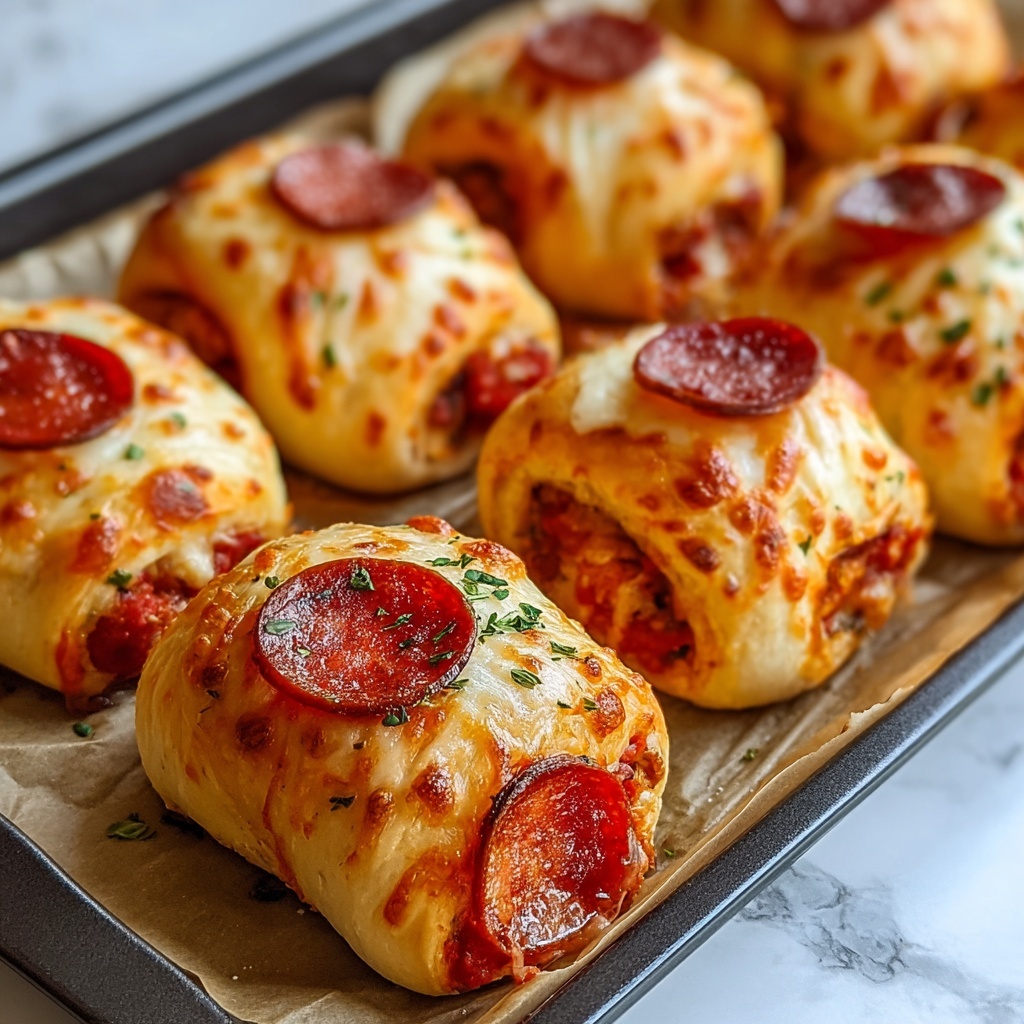 These pizza roll-ups pair wonderfully with simple, crisp sides like a green salad tossed with lemon vinaigrette or roasted vegetables to add some balance to the meal. For a heartier option, a cup of warm tomato soup complements the cheesy rolls perfectly.
