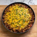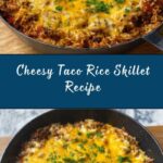 This Cheesy Taco Rice Skillet is a flavorful and hearty one-pan meal perfect for busy weeknights. Featuring seasoned ground beef, tender rice cooked in a rich tomato and beef broth base, and topped with melted cheddar and Monterey Jack cheese, this easy Mexican-inspired dish combines convenience and deliciousness in every bite. Ready in just 35 minutes, it’s a family-friendly dinner that can be customized with your favorite toppings.
