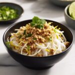 Remove the skillet from heat, then sprinkle generously with crushed roasted peanuts and fresh cilantro. Don’t forget the lime wedges to squeeze over for that final citrus burst. Serve immediately for the best experience of your Chicken Pad Thai Recipe.