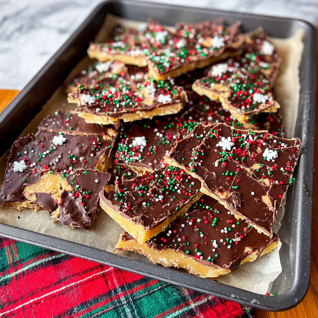 Christmas Crack, also known as Cracker Toffee, is a delightful holiday treat combining crunchy saltine crackers with rich buttery toffee, melted chocolate, and festive sprinkles. This easy-to-make dessert is perfect for sharing during the festive season and offers a perfect balance of salty and sweet flavors with a crisp, melt-in-your-mouth texture.