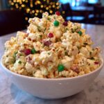 This festive Christmas Popcorn recipe is a delightful and colorful treat perfect for holiday gatherings. Crisp popcorn is mixed with crunchy pretzels, vibrant red and green M&M’s, and optional crushed candy canes, all coated in a luscious drizzle of melted white chocolate. Sprinkled with holiday sprinkles, this sweet and salty snack is easy to prepare and sure to spread cheer at any celebration.