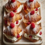 In a bowl, whip the heavy cream until soft peaks form, signaling it’s aerated but still silky. Gradually add powdered sugar and vanilla extract, continuing to whip until you achieve stiff peaks. This creates a beautifully smooth and sweet filling that holds its shape inside the pastry.