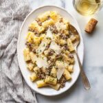 Pair this hearty pasta with a crisp green salad tossed in a light vinaigrette to cut through the richness. Roasted or steamed seasonal vegetables such as broccoli, asparagus, or green beans also complement the dish beautifully and bring a pop of color to your plate.