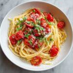 This Creamy Fresh Tomato Garlic Pasta is a quick and comforting dish that combines the freshness of ripe tomatoes with the richness of heavy cream and Parmesan cheese, all tossed with perfectly cooked spaghetti and aromatic garlic. Ideal for a flavorful weeknight dinner, it delivers a creamy, garlicky tomato sauce with fresh basil notes.