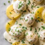 This Creamy Garlic Sauce Baby Potatoes recipe features tender, halved baby potatoes enveloped in a rich and flavorful garlic cream sauce with Parmesan cheese. It’s a quick and comforting side dish perfect for any meal, combining the natural earthiness of potatoes with a velvety cheesy garlic sauce and a fresh hint of parsley.