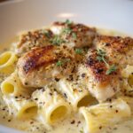 Finish your dish by sprinkling freshly chopped parsley over the top. This adds a burst of green color and a touch of freshness that balances the rich flavors. Serve your Creamy Garlic Butter Chicken and Rigatoni in Parmesan Sauce Recipe immediately to enjoy it at its best.