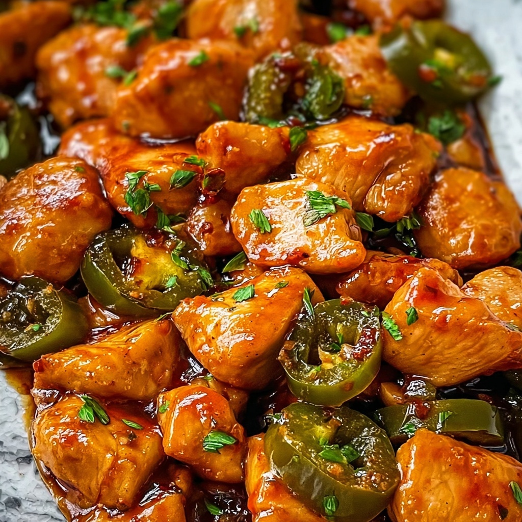 Jalapeno Chicken is a flavorful and creamy baked chicken dish featuring tender chicken breasts cooked in a spicy jalapeño cream sauce with melted cheddar and Monterey Jack cheeses. This recipe balances heat and richness, delivering a comforting and delicious meal that is perfect for a weeknight dinner or special occasion.