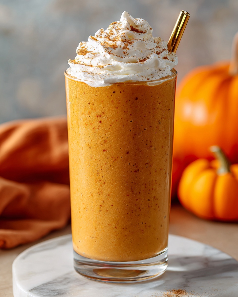 Sprinkle a pinch of extra pumpkin pie spice or a few toasted hazelnuts on top for a delightful crunch and aroma. A dollop of whipped cream perfectly complements the smoothie’s richness, making it feel extra special.