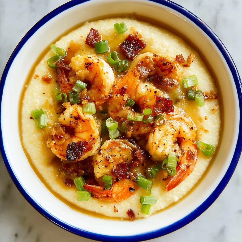 A classic Southern dish featuring creamy, buttery grits topped with a flavorful shrimp and bacon sauce. This comforting recipe combines tender shrimp sautéed with garlic, green onions, and crispy bacon, served over smooth, cheesy grits for a satisfying meal perfect for brunch or dinner.