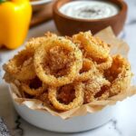 Once done, transfer the golden, crunchy pepper coins to a plate and serve them piping hot. They’re best enjoyed right away for maximum crispness, especially with your favorite dipping sauce like ranch or marinara on the side.