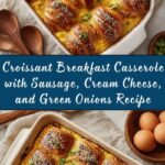 This Croissant Breakfast Casserole with Sausage, Cream Cheese, and Green Onions is a savory, indulgent morning dish perfect for brunch or a special breakfast. Featuring layers of flaky croissants filled with a creamy sausage and cheese mixture, soaked in a flavorful egg custard, and baked until golden and bubbly, this casserole combines rich textures and bold flavors for a satisfying start to your day.