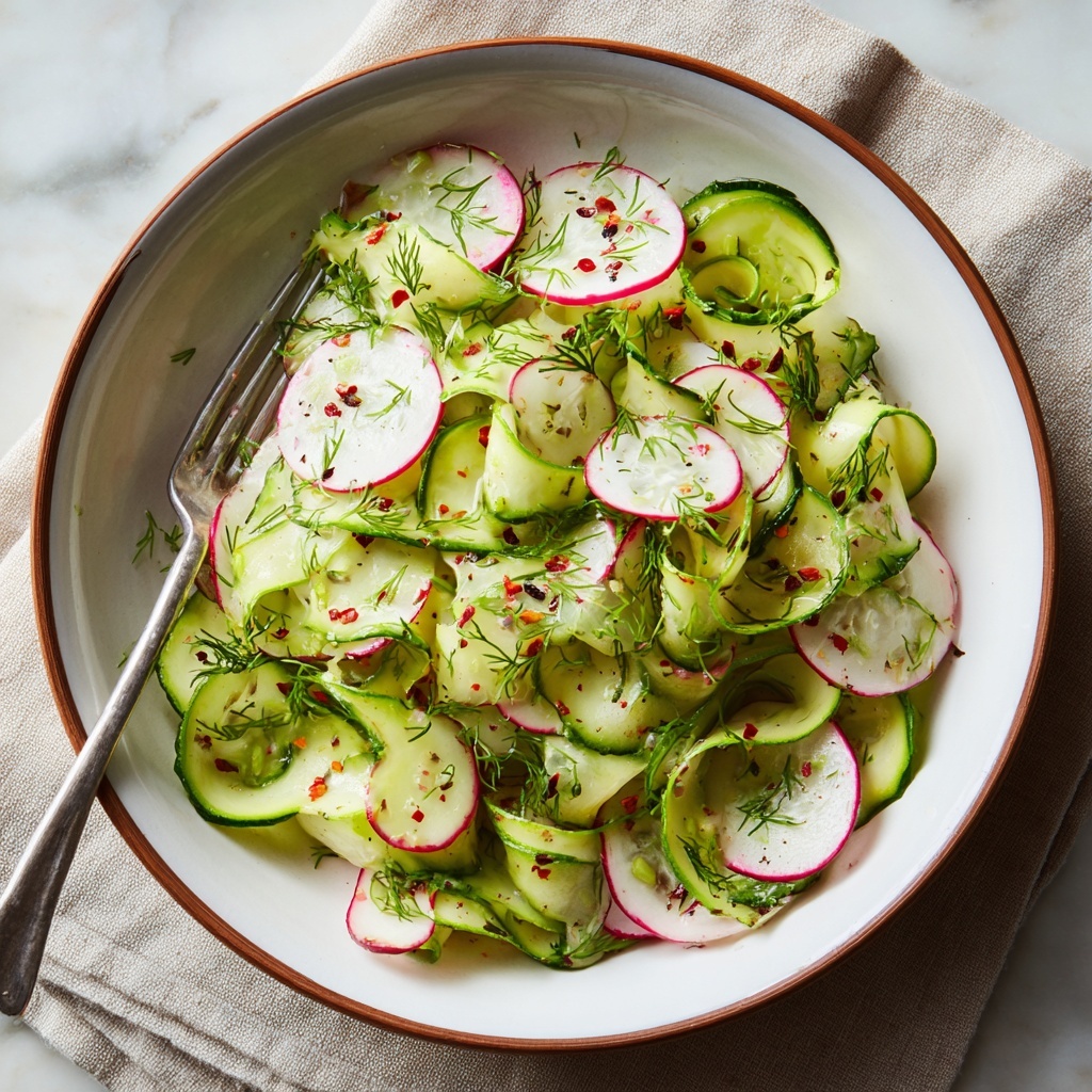 This refreshing Cucumber Radish Salad combines crisp cucumber and radish slices with a tangy lemon-Dijon dressing, enhanced by fresh dill. Perfect as a light side dish or a healthy snack, it comes together in just 10 minutes.