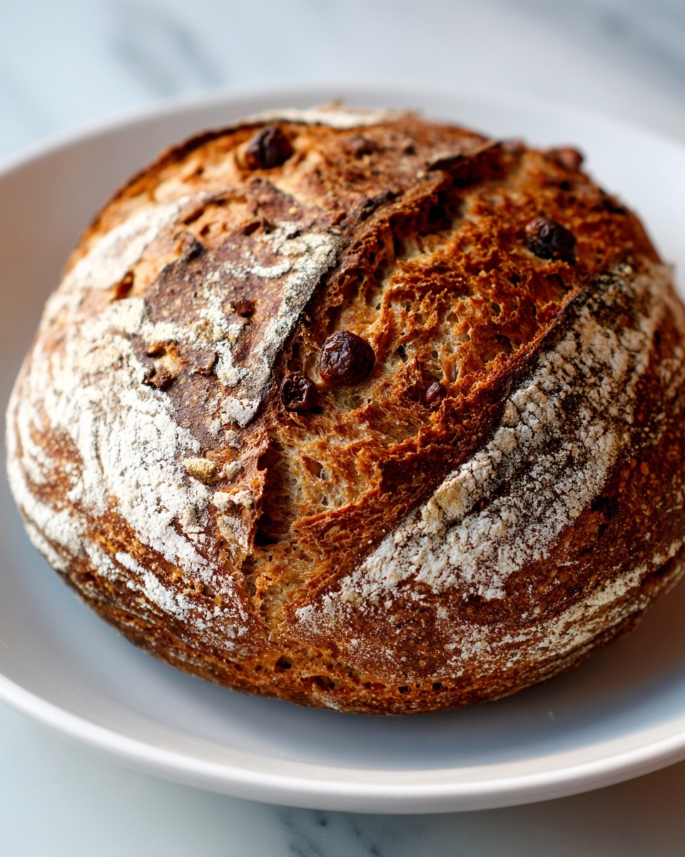 The sourdough starter is key to the unique tang and complexity in this bread’s flavor. Using commercial yeast will speed up the process but won’t create the same depth or texture you get from natural fermentation.