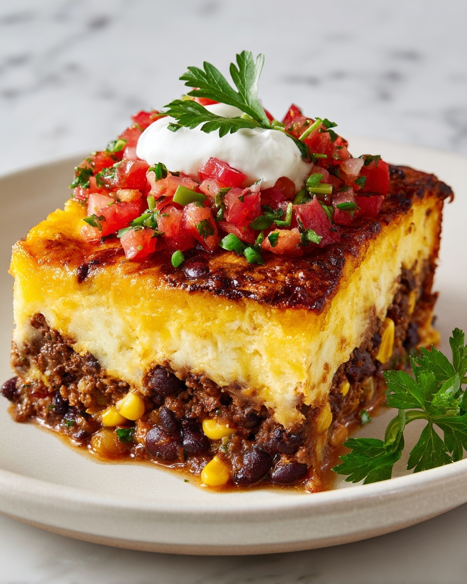 To make your taco bake truly shine, garnishing is key. A dollop of cool sour cream balances the spicy, cheesy richness, while sliced green onions add a fresh, sharp bite. For some heat and vibrant color, consider adding sliced jalapeños and fresh diced tomatoes. These toppings elevate every bite and make the dish visually inviting.