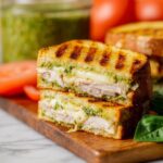 If you want to keep your Easy Turkey Basil Pesto Panini Recipe on hand for a quick meal, freeze assembled but ungrilled sandwiches individually wrapped to avoid freezer burn. They can stay good for up to 1 month. Just thaw overnight in the fridge before reheating.