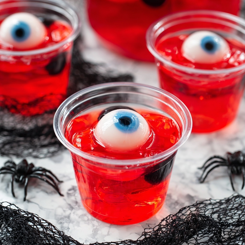 These Eyeball Jello Shots are a spooky and fun party treat perfect for Halloween or any festive gathering. Made with strawberry gelatin, vodka, and topped with gummy eyeball candies, they deliver a deliciously boozy and visually striking snack that’s easy to prepare and sure to impress your guests.
