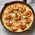 Garlic Shrimp Gratin is a rich and flavorful French-inspired baked seafood dish featuring succulent shrimp cooked in a creamy garlic sauce, topped with a crispy Parmesan and panko breadcrumb crust. Perfect as a main course, this gratin combines tender shrimp, aromatic garlic, and a balance of heat from red pepper flakes, all finished with fresh parsley and a squeeze of lemon for brightness.