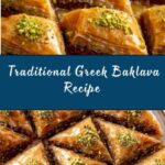 This traditional Greek Baklava recipe features layers of crisp phyllo dough filled with a fragrant mixture of walnuts and pistachios, spiced with cinnamon and cloves, and sweetened with a luscious honey syrup. Baked to golden perfection, this dessert offers a perfect balance of crunch, sweetness, and aromatic spices, making it a beloved Mediterranean treat.