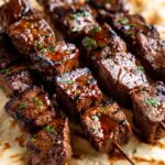 - Garnish and serve: Remove the beef skewers from the grill and sprinkle with fresh parsley for a burst of color and added freshness. Serve warm alongside your favorite sides or pita bread.