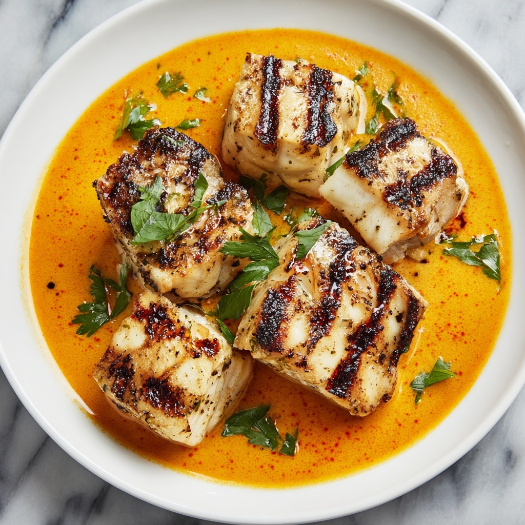 A vibrant and flavorful recipe for grilled cod served with a smoky, nutty Romesco sauce made from roasted hazelnuts, red peppers, and smoked paprika. This dish offers a perfect balance of tender, charred fish and a rich, tangy sauce that elevates the simple cod fillets to a gourmet level, ideal for a quick yet impressive weeknight or weekend meal.