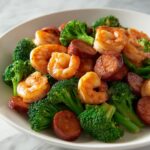 Before you even heat your skillet, make sure your shrimp are peeled and deveined if they aren’t already. Slice the smoked sausage into bite-sized rounds that will cook evenly with the shrimp. Chop the broccoli into uniformly sized florets so they cook quickly and consistently. Having everything prepped sets you up for a smooth cooking process.