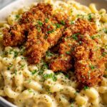 This Honey Pepper Chicken Mac and Cheese combines crispy fried chicken pieces coated in a sweet and spicy honey pepper sauce, served atop creamy, cheesy macaroni. A delightful fusion of comfort food and bold flavors perfect for a satisfying meal.