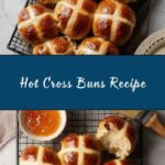 These classic Hot Cross Buns are soft, spiced, and studded with candied peel and sultanas, making them a perfect treat for Easter or any cozy gathering. The buns are gently brushed with milk before baking to keep them soft, and finished with a sweet apricot glaze for a shiny, flavorful crust.