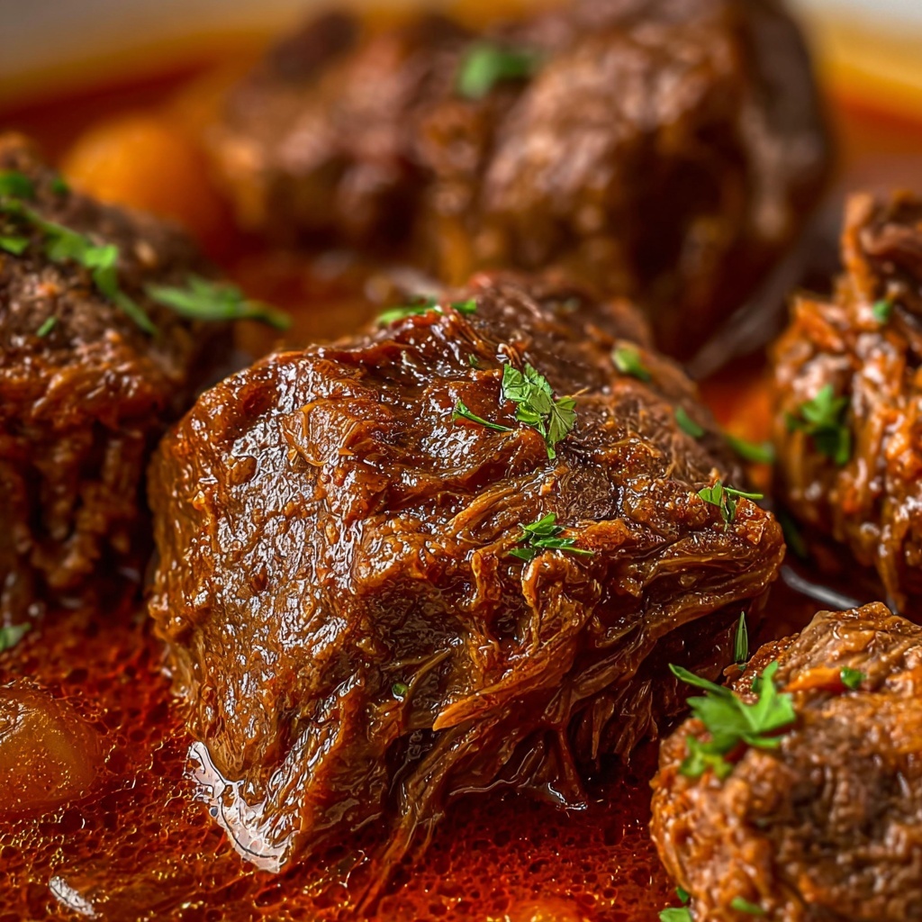 Fresh herbs like chopped parsley or a sprinkle of grated Parmesan add visual appeal and an extra punch of savory brightness that beautifully complements the hearty sauce. Serve it warm, and don’t hesitate to drizzle a bit of the braising liquid over everything for moist, melting bites.