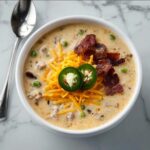 A bowl of this soup deserves thoughtful garnishes that add freshness, texture, and a pop of color. Consider topping it with extra crispy bacon, a sprinkle of fresh chopped green onions, or a dollop of sour cream for cool contrast. A few sliced jalapeno rings or a handful of chopped cilantro can also brighten things up and enhance the vibrant flavors.