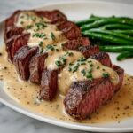 This Juicy Steak with Creamy Garlic Sauce recipe delivers perfectly seared sirloin or ribeye steaks topped with a rich, velvety garlic cream sauce. Ready in just 15 minutes, this dinner combines simple ingredients like garlic, cream, and fresh herbs to create a flavorful, restaurant-quality meal at home. The steaks are pan-seared to your preferred doneness and complemented by a luscious sauce simmered in the same skillet, ensuring maximum flavor with minimal cleanup.