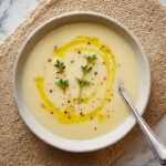 Finish by sprinkling fresh thyme leaves across the top and adding an extra dash of black pepper to taste. This final touch crowns your creation with a fresh, aromatic burst that lifts the entire flavor profile, completing the experience of Julia Child’s Creamy Potato Leek Soup Bliss Recipe.