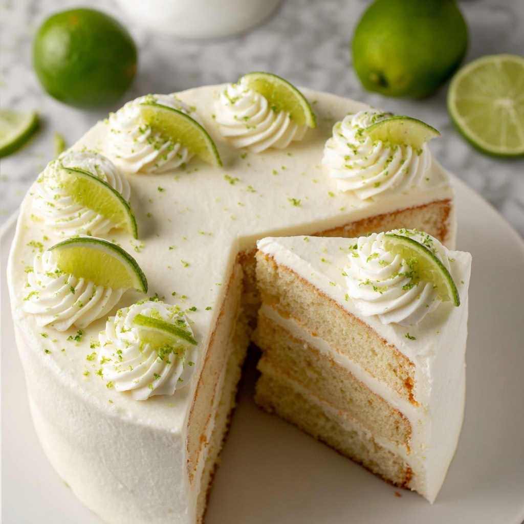 Fresh lime slices aren’t just pretty; they reinforce the cake’s lime essence right at the first glance. You can also sprinkle a little extra lime zest or finely chopped mint leaves for a refreshing contrast in flavor and appearance.