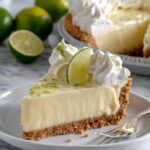 - Serve: Just before serving, spread or pipe the freshly whipped cream evenly over the chilled pie. Optionally, garnish with additional key lime zest or lime slices for an attractive presentation.
