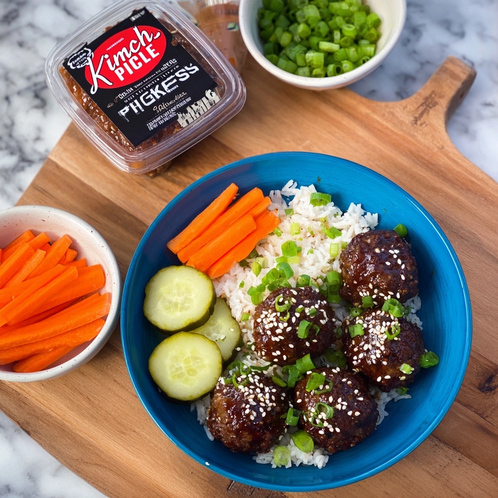 These meatballs pair wonderfully with fluffy steamed rice and a vibrant vegetable medley such as steamed broccoli, kimchi, or sautéed bok choy. The fresh, slightly bitter vegetables contrast beautifully with the sweet and spicy meatballs, creating a balanced and satisfying meal.